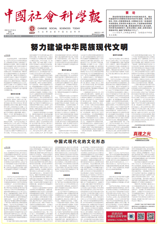 习近平总书记在文化传承发展座谈会上的重要讲话中指出,把马克思主义基本原理同中国具体实际、同中华优秀传统文化相结合,其结果是互相成就,造就了一个有机统一的新的文化生命体,让马克思主义成为中国的,中华优秀传统文化成为现代的,让经由“结合”而形成的新文化成为中国式现代化的文化形态。这一高屋建瓴的深刻论断,为我们担负起新的文化使命、建设中华民族现代文明指明了方向和路径。