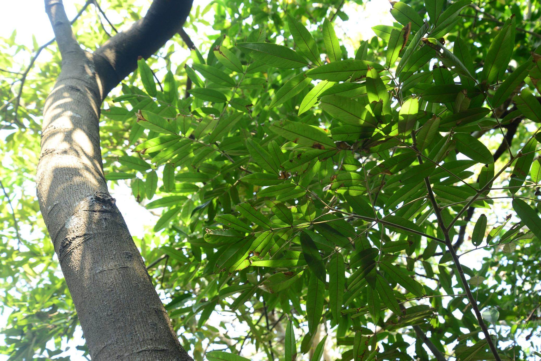 据介绍,在深圳坝光湿地园发现的花榈木野生种群一共有10株,其中胸径超过10厘米的成年植株有3株,最大一株胸径达16.2厘米,高约6米。其余7株为幼年植株,胸径在0.4-8.2厘米不等。“相较于内陆种群,该种群呈现显著滨海适应特征,如植株叶片更为短狭,叶背绒毛密度更稀疏。我们在现场同时发现了自然萌发的少量幼苗,证实该物种在深圳具备完整生活史。”何春梅说。