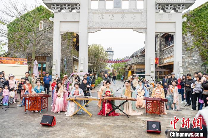 笛子、琵琶等传统民乐器材依次奏响,灵动的音符裹挟着丝丝雨意,从琴弦间、笛管中流淌而出。游客们在这烟雨水乡中,切身领略到“天籁与和谐”的美妙意境。